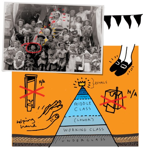 Look at this photo. I love it. Here I am, in Ilderton Road, Bermondsey, on Coronation Day, 1953. I’m in my new Hopalong Cassidy outfit, hat, gun, chaps. I rather fancy Britannia, in a 5-year-old way, but am scared of the 100-per-cent-burns victim behind me. I haven’t yet met a black person, so I’m not yet appalled by the blacked-up boy with the bow tie.