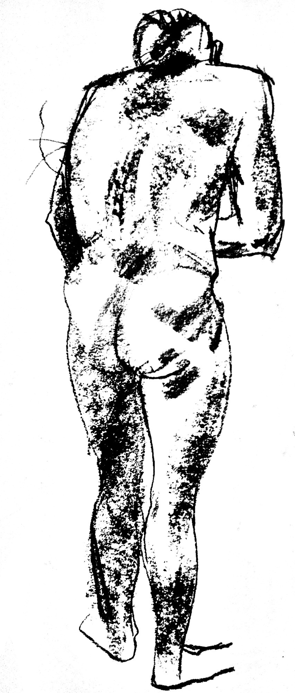 Way back in the day, as they say, 1964 probably, I opened a door with some trepidation and saw my first naked woman. Or nude woman. I’m still not sure how to describe someone who is intentionally without clothes, for artistic reasons. And as a job. I enrolled in the Saturday morning life class at Goldsmith’s College, London, and loved it. The tutor was Sam Rabin, a painter (you can see his work in Tate Britain) and a champion wrestler. Fortunately, not with his students. He’d nudge you off your seat though (called a donkey – the seat, that is) and with a stubby black pencil he’d demonstrate how to look, how to transfer the naked/nude person in front of you into two dimensions. Totally inspiring.